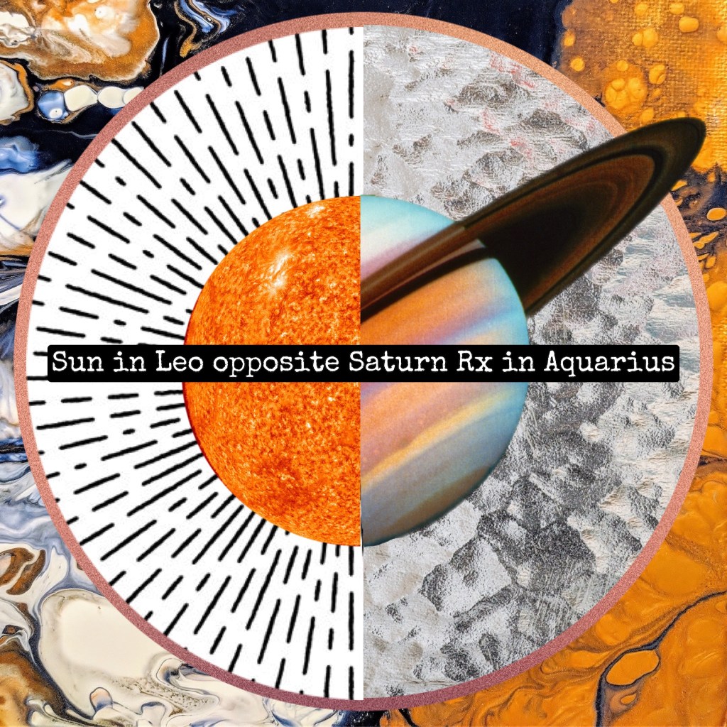 Often in transit, the Sun can effectively ‘light up’ whatever planet it comes in contact with, showing the struggles or achievements of its present placement through a variety of lenses. When the Sun and Saturn interact, their polarity will always be apparent– because that is the nature of their relationship. One at the center of our solar system, and one at the farthest periphery. Renn Butler (who wrote literally the only astrological reference that I use regularly, The Archetypal Universe) outlines the themes of Saturn-Sun aspects as follows:
